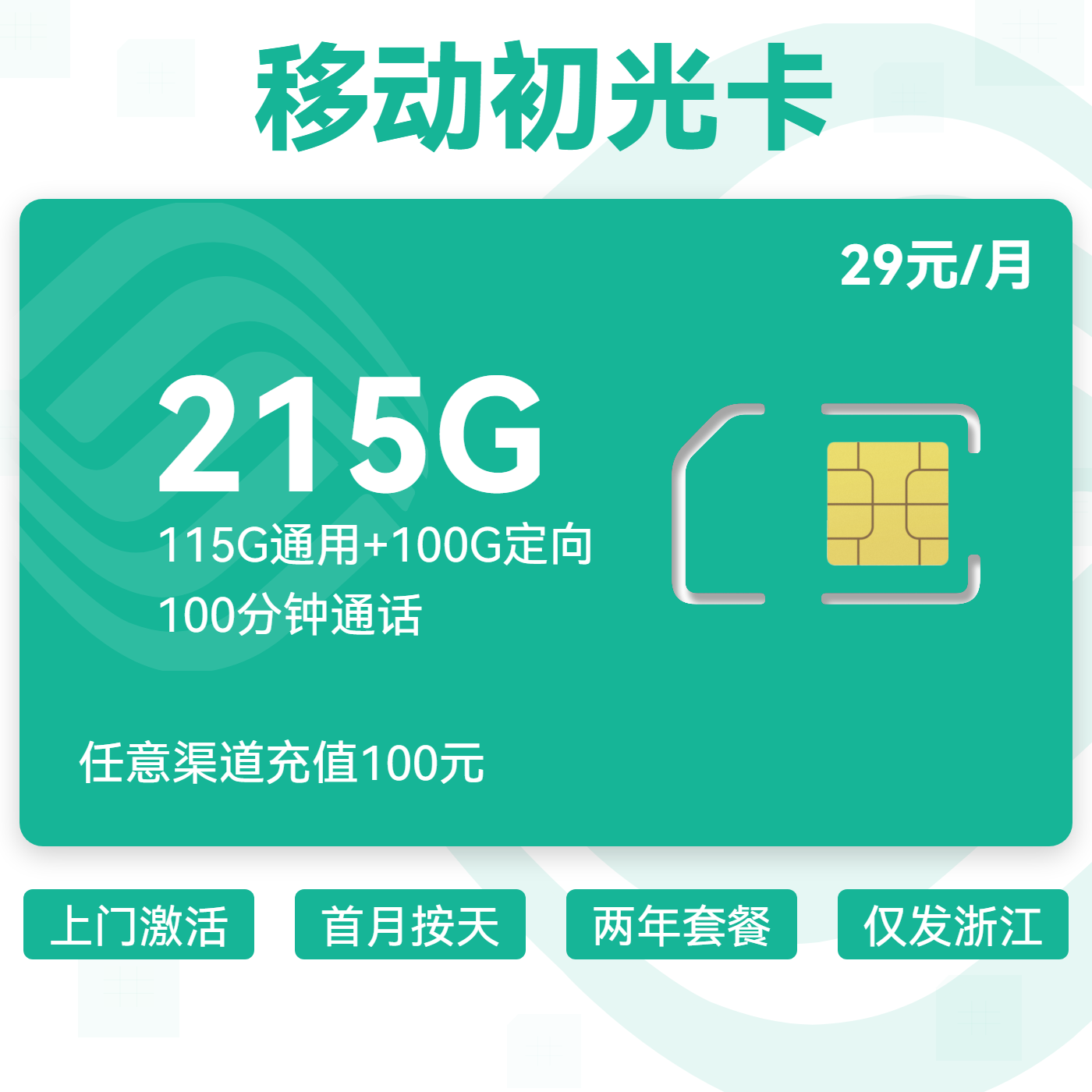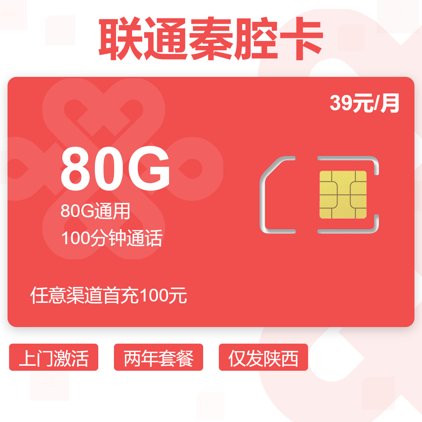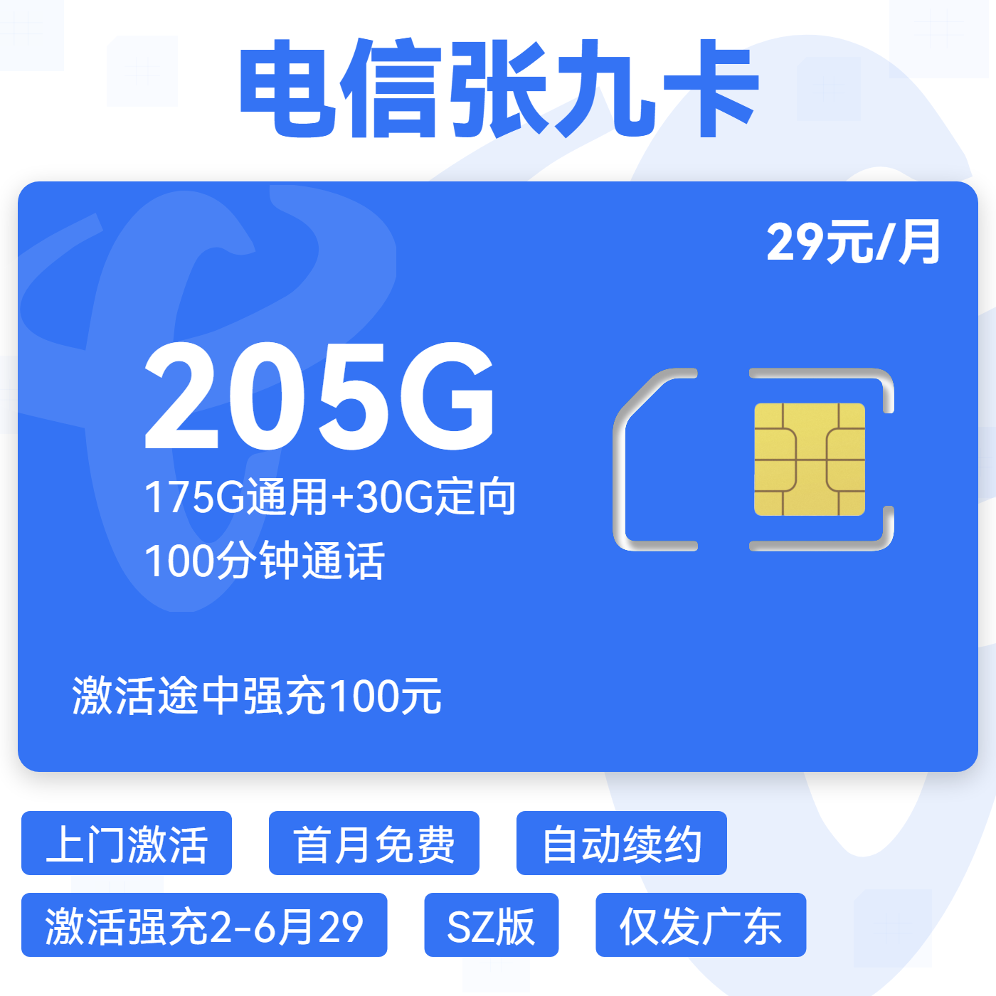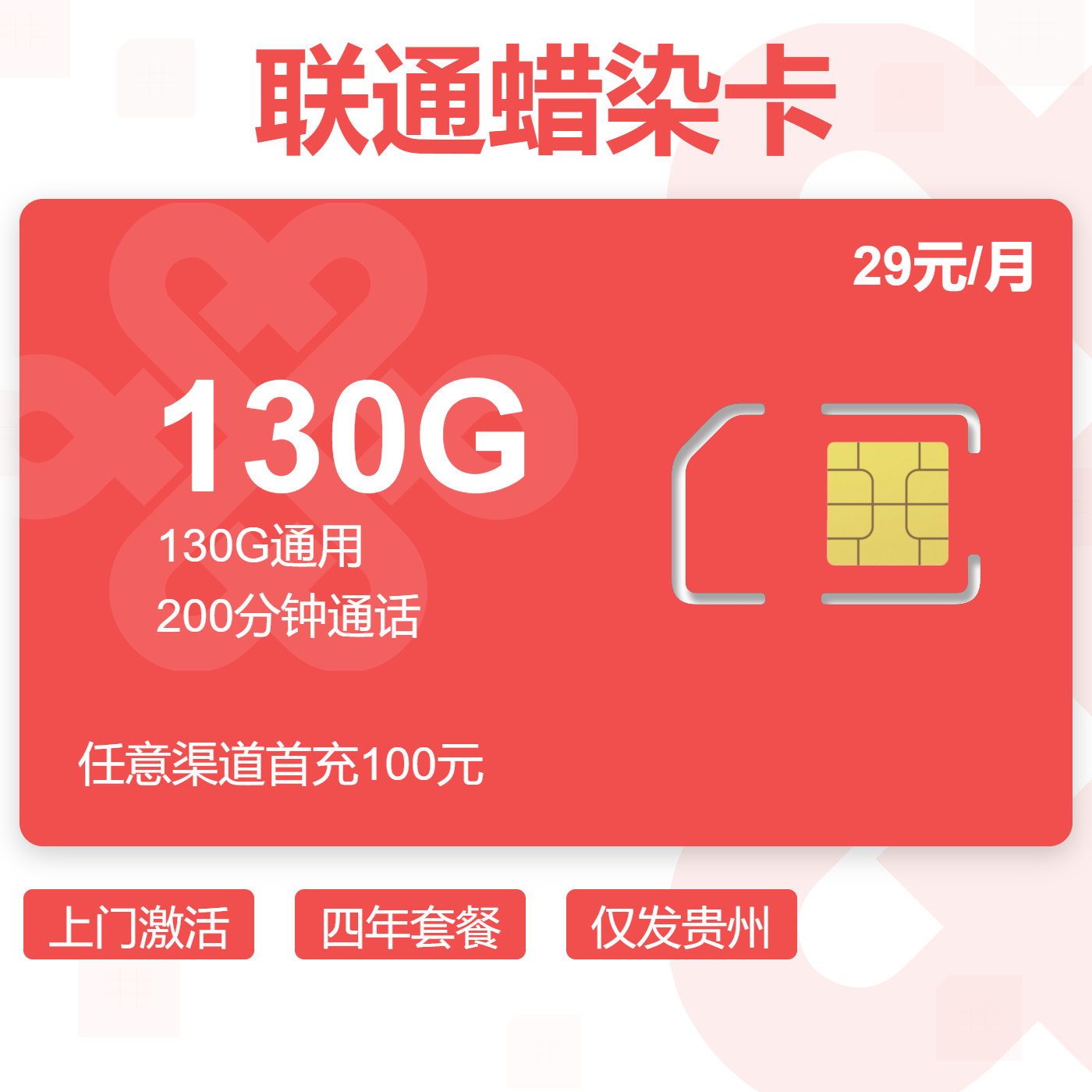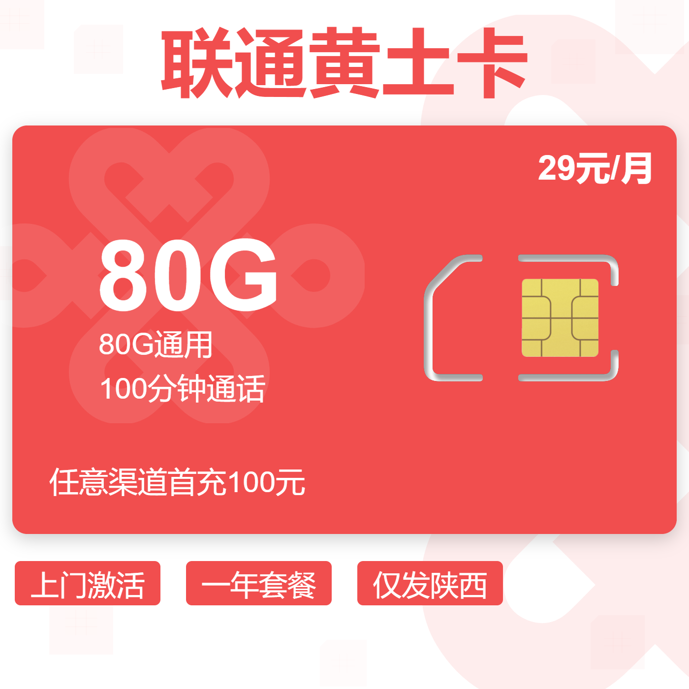29元80G全国通用流量+100分钟通话(两年优惠)