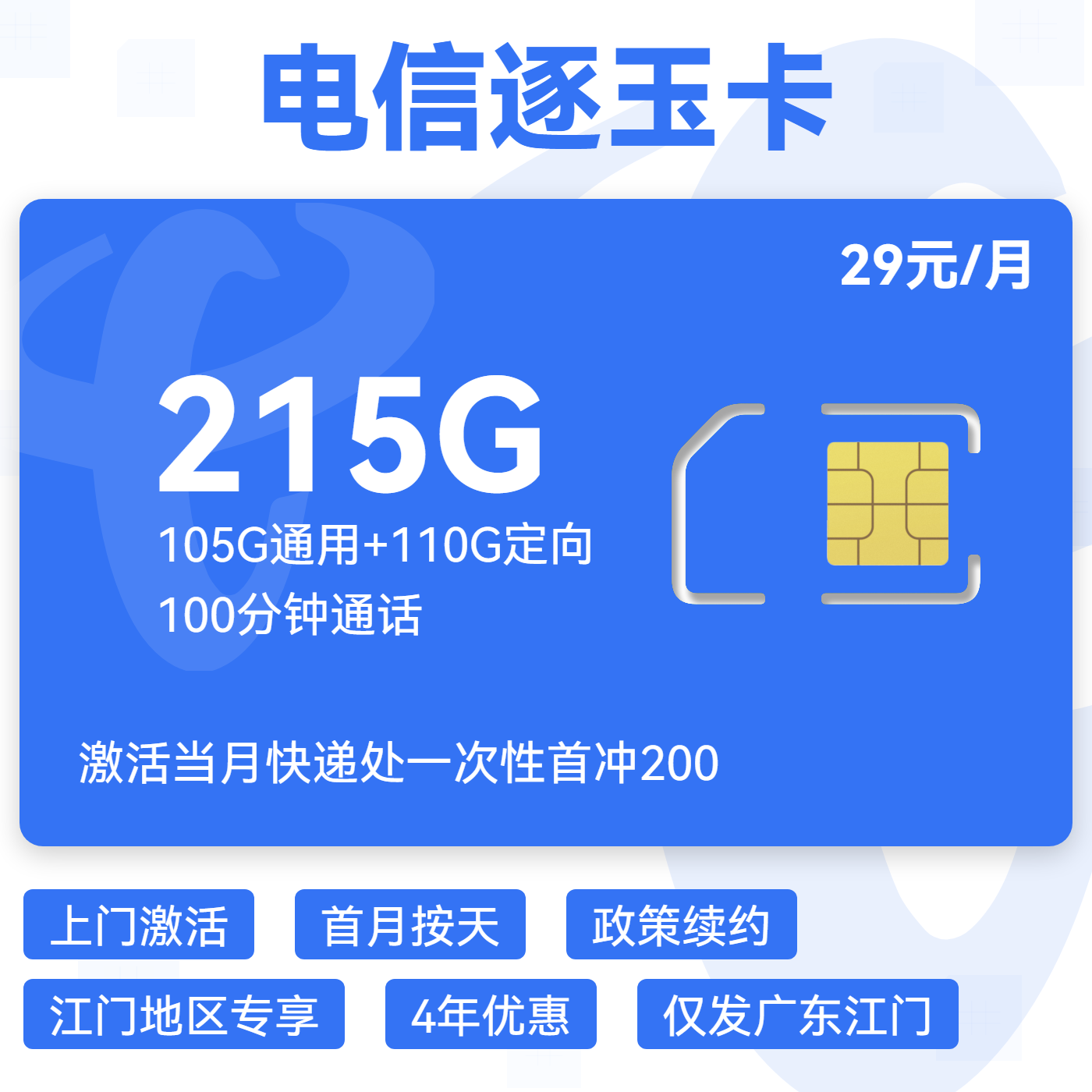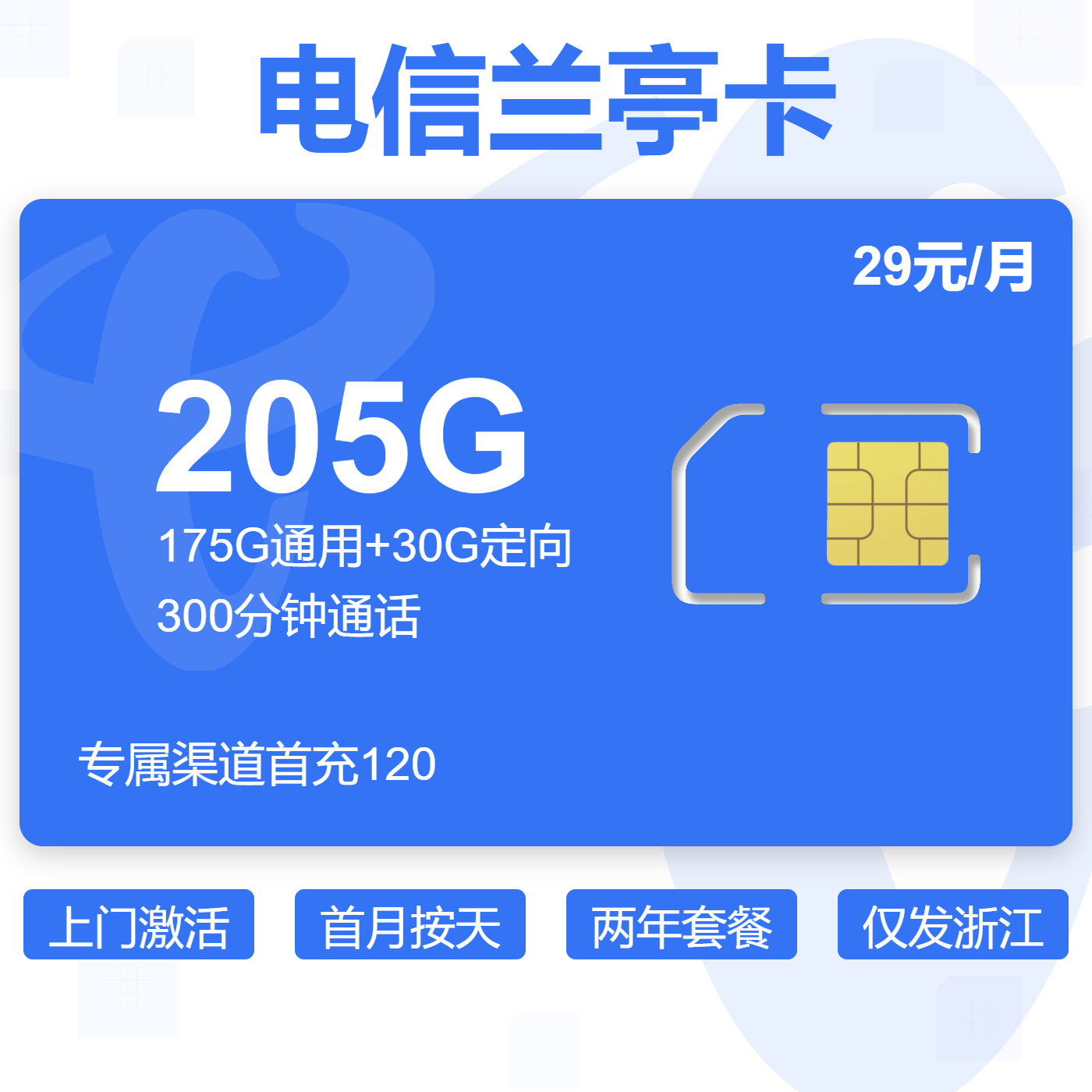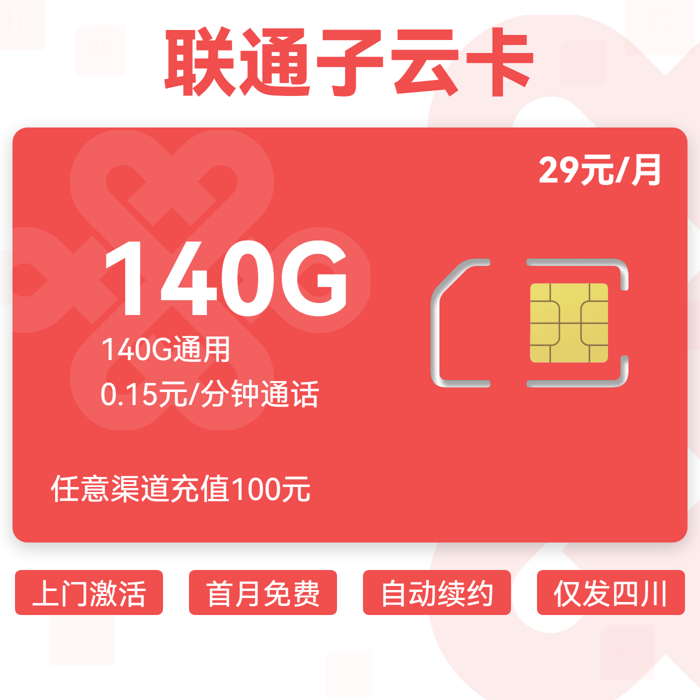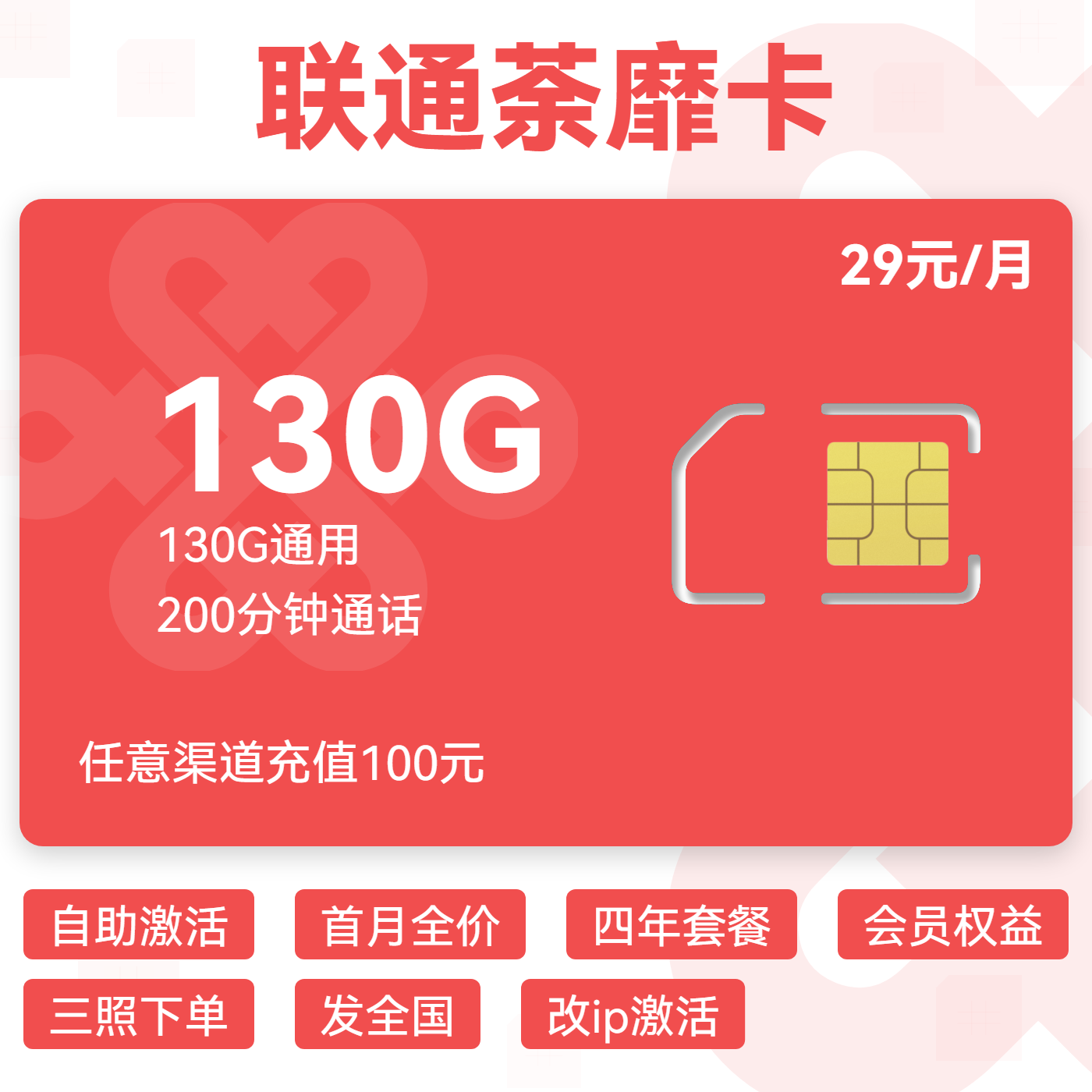 29元80G全国通用流量+100分钟通话(两年优惠)