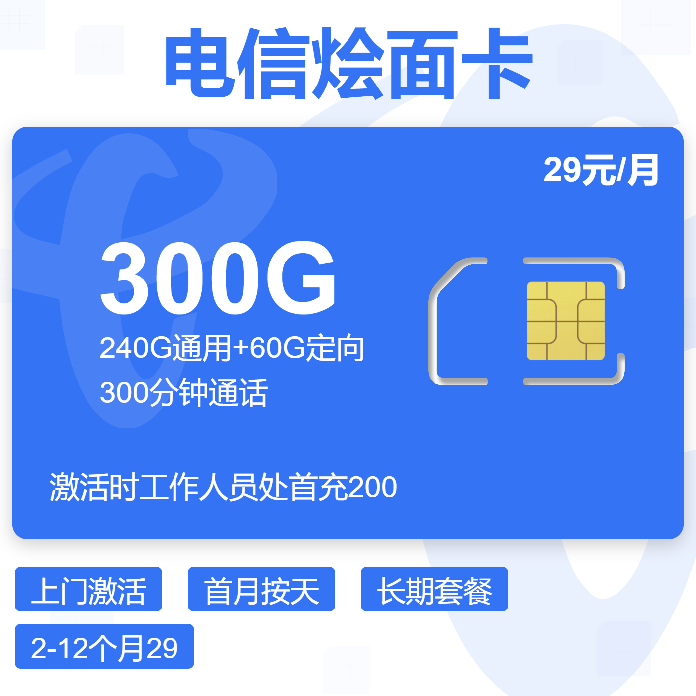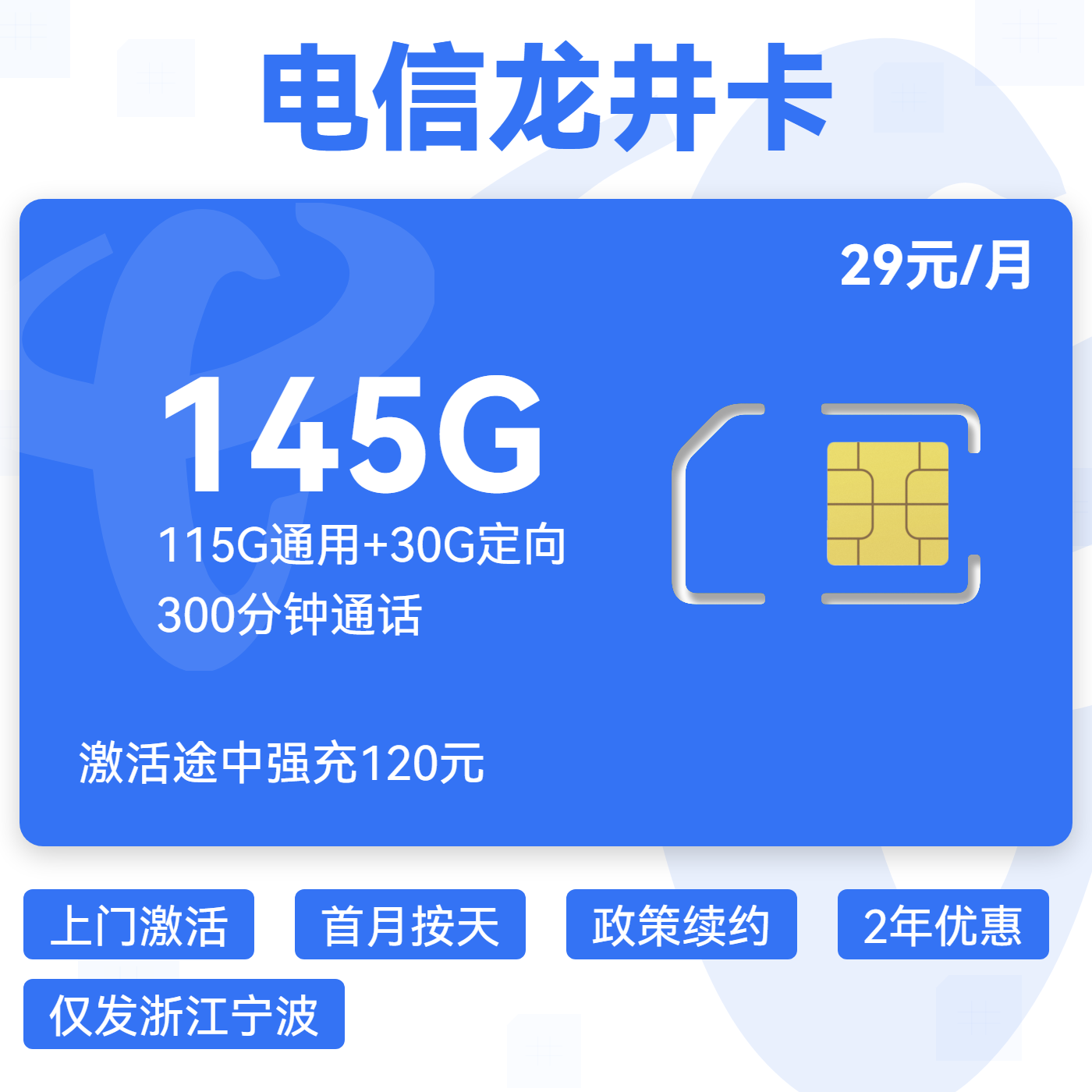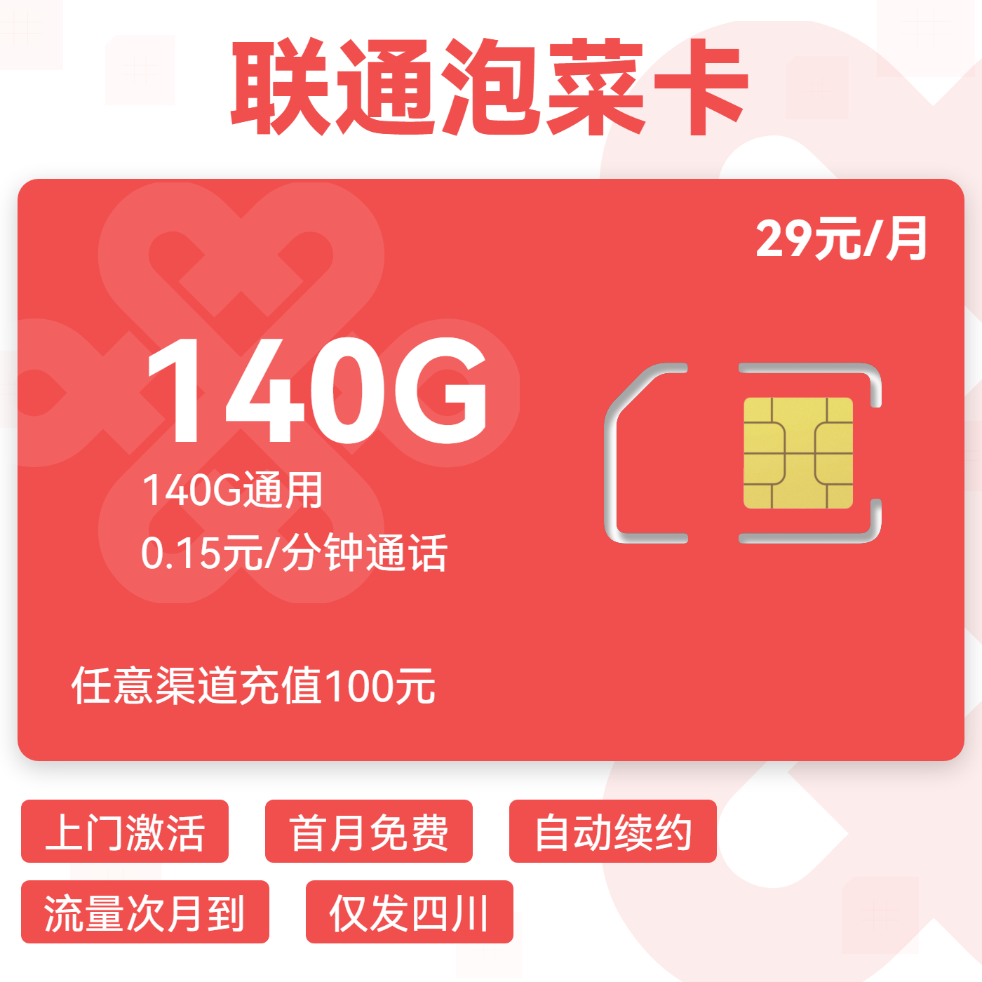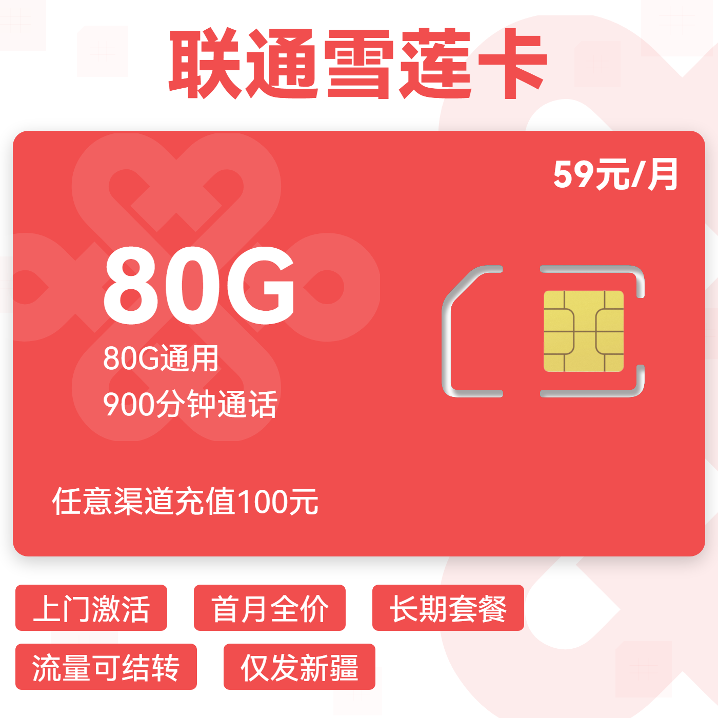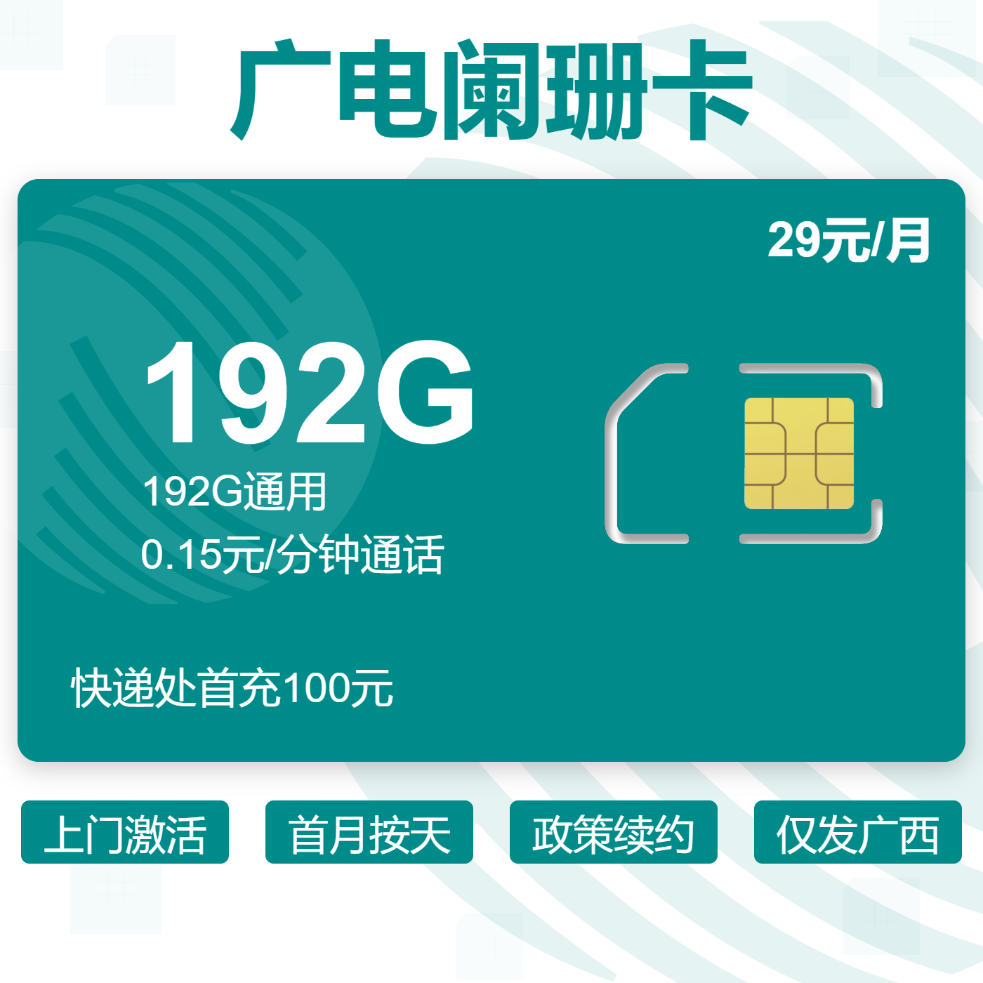 29元80G全国通用流量+100分钟通话(两年优惠)