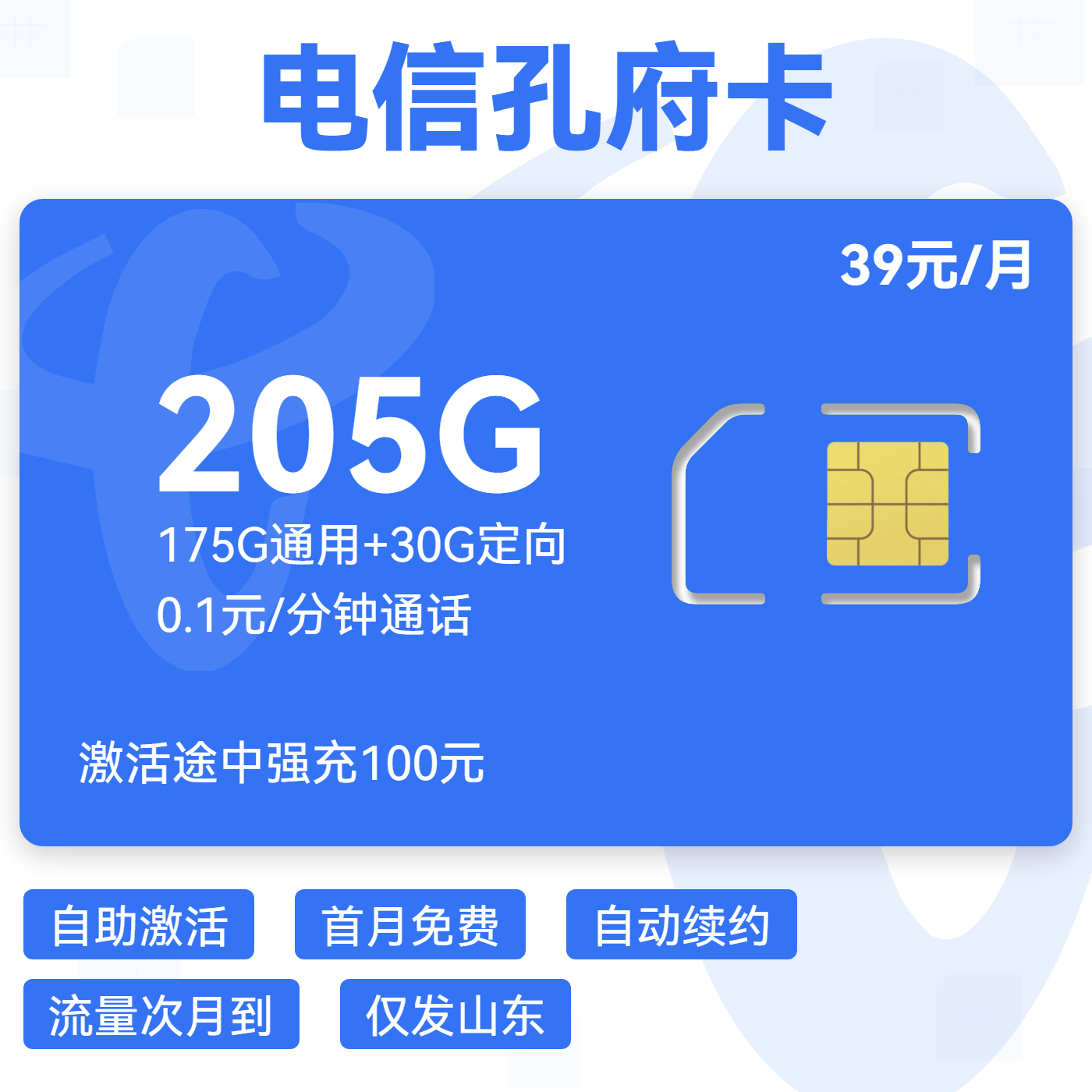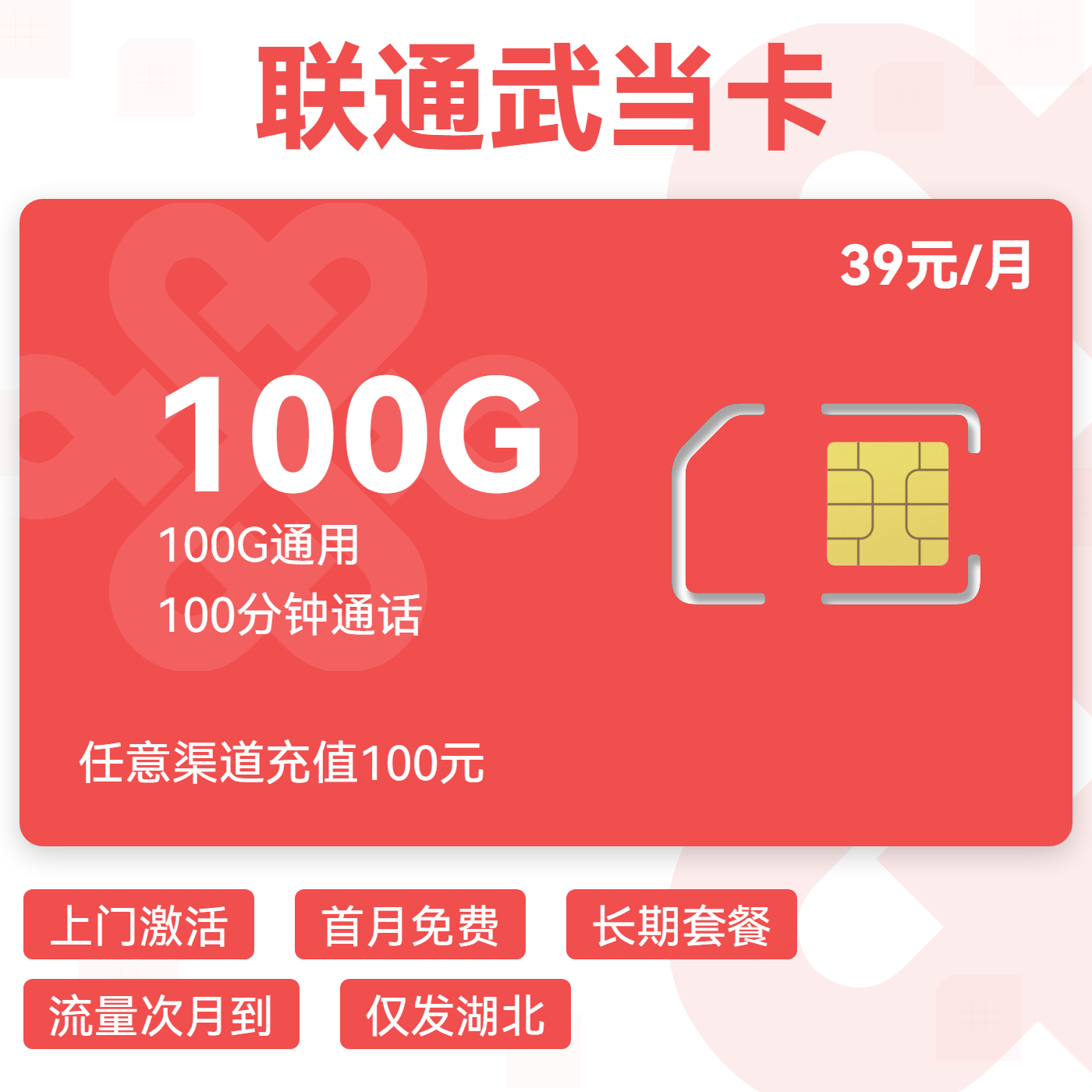 39元219GB全国通用流量+100分钟免费通话 首充100元享优惠