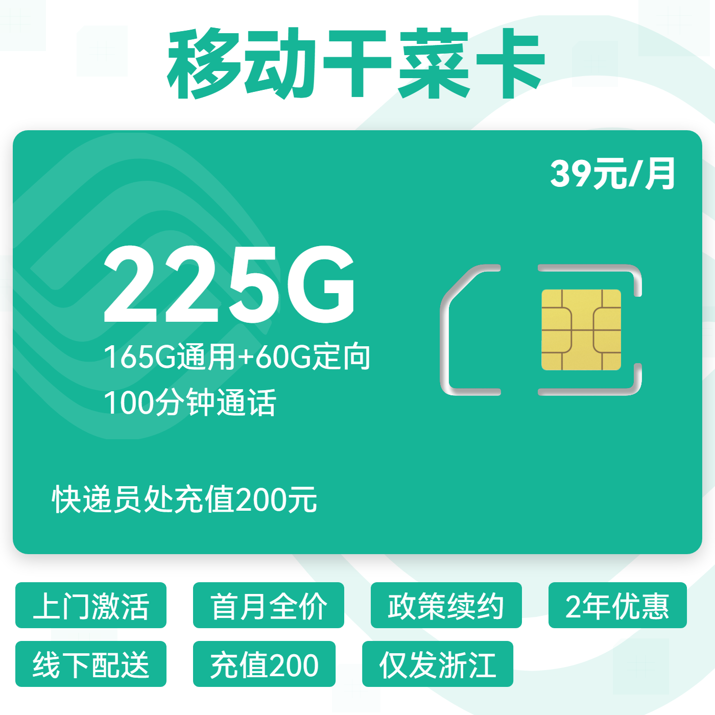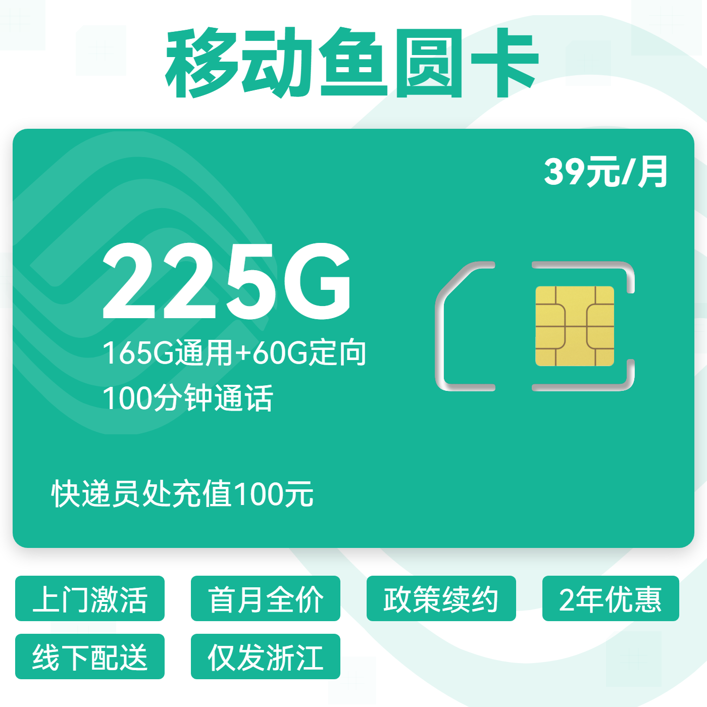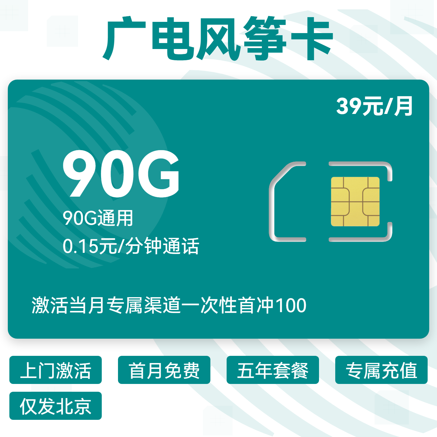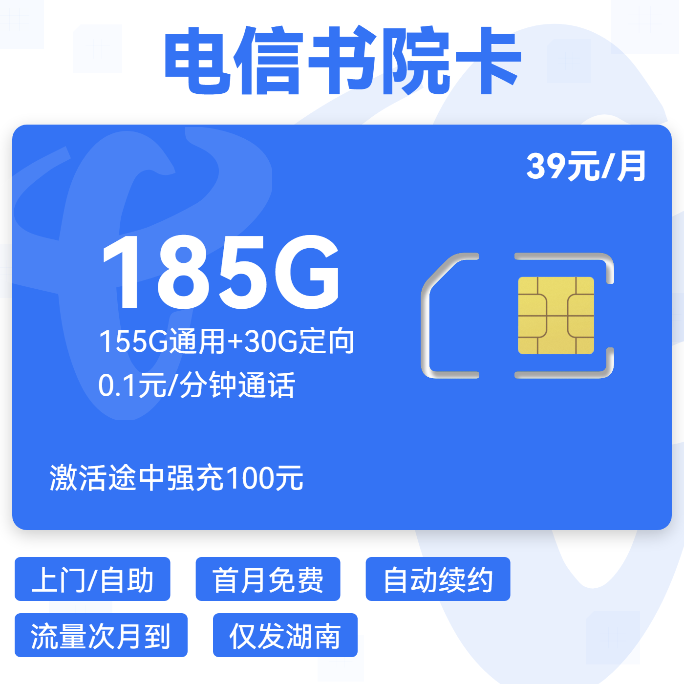 39元155G全国通用流量+100分钟通话(可选靓号)