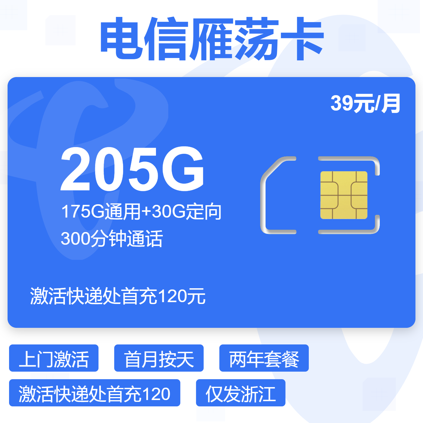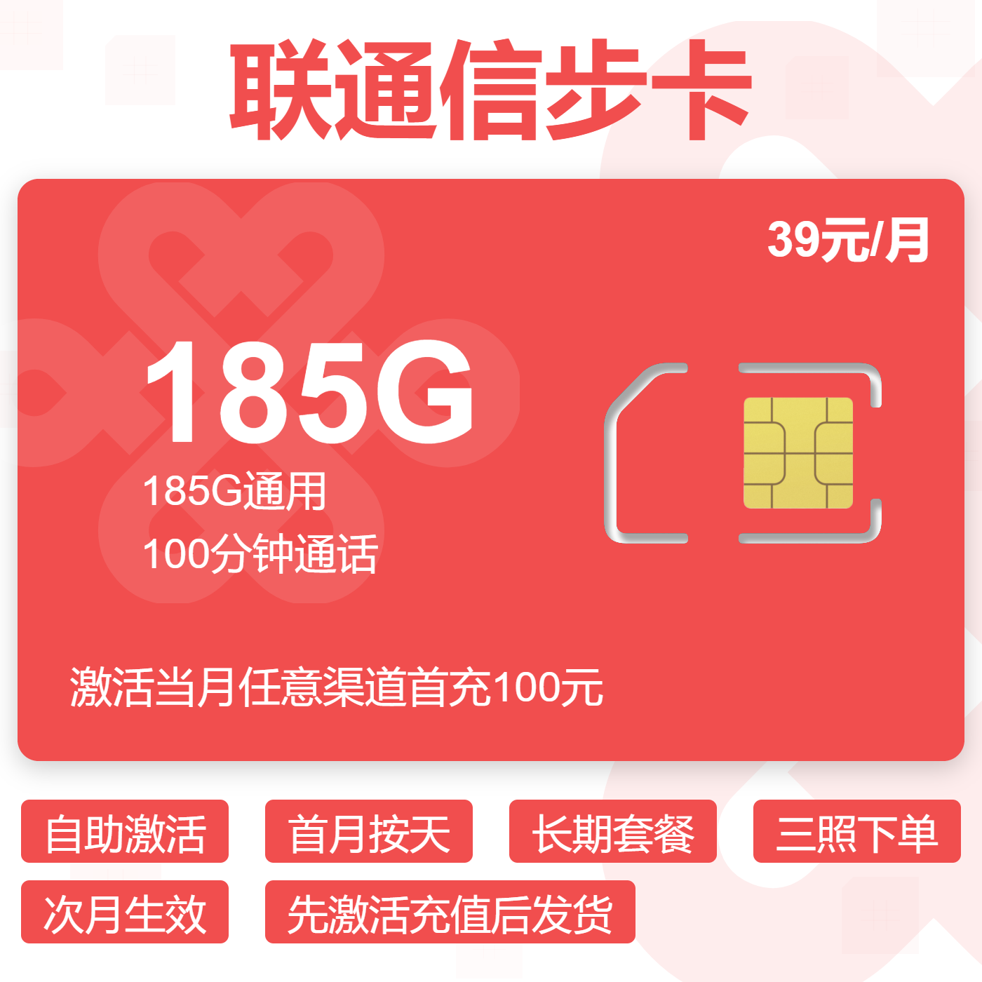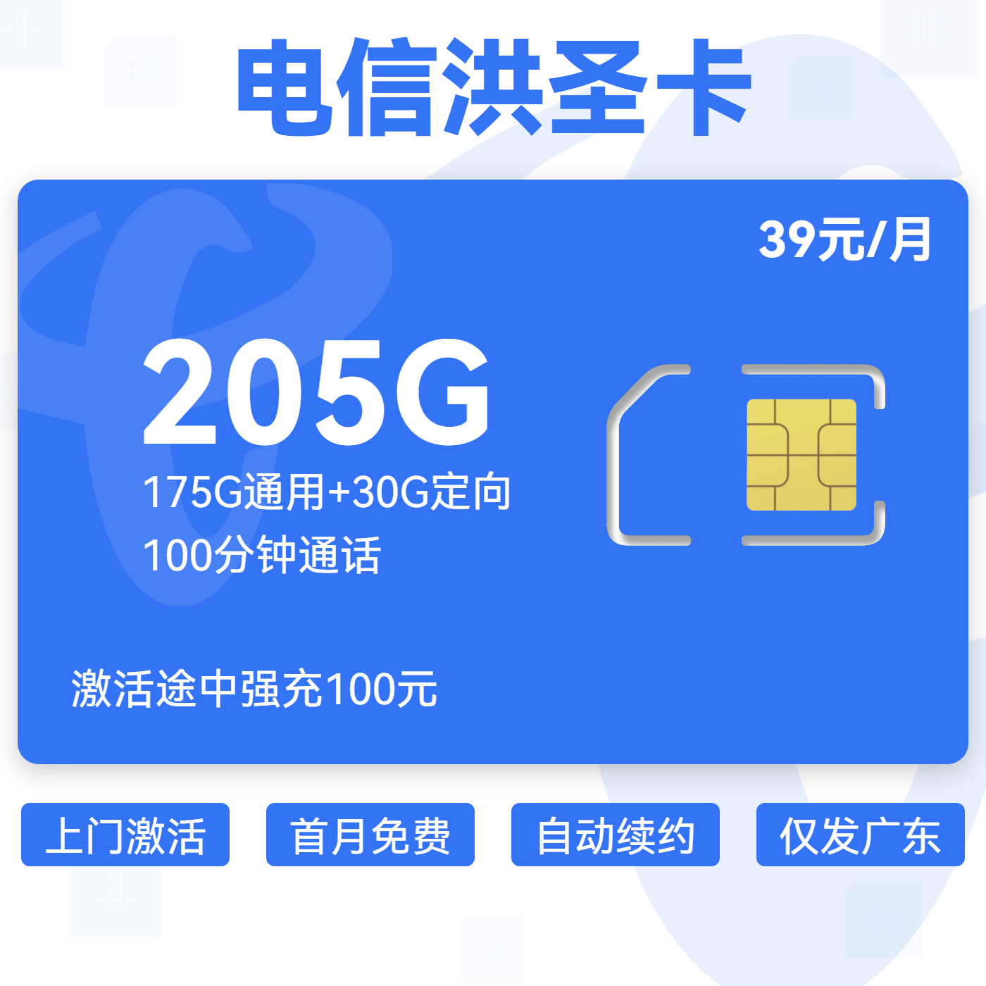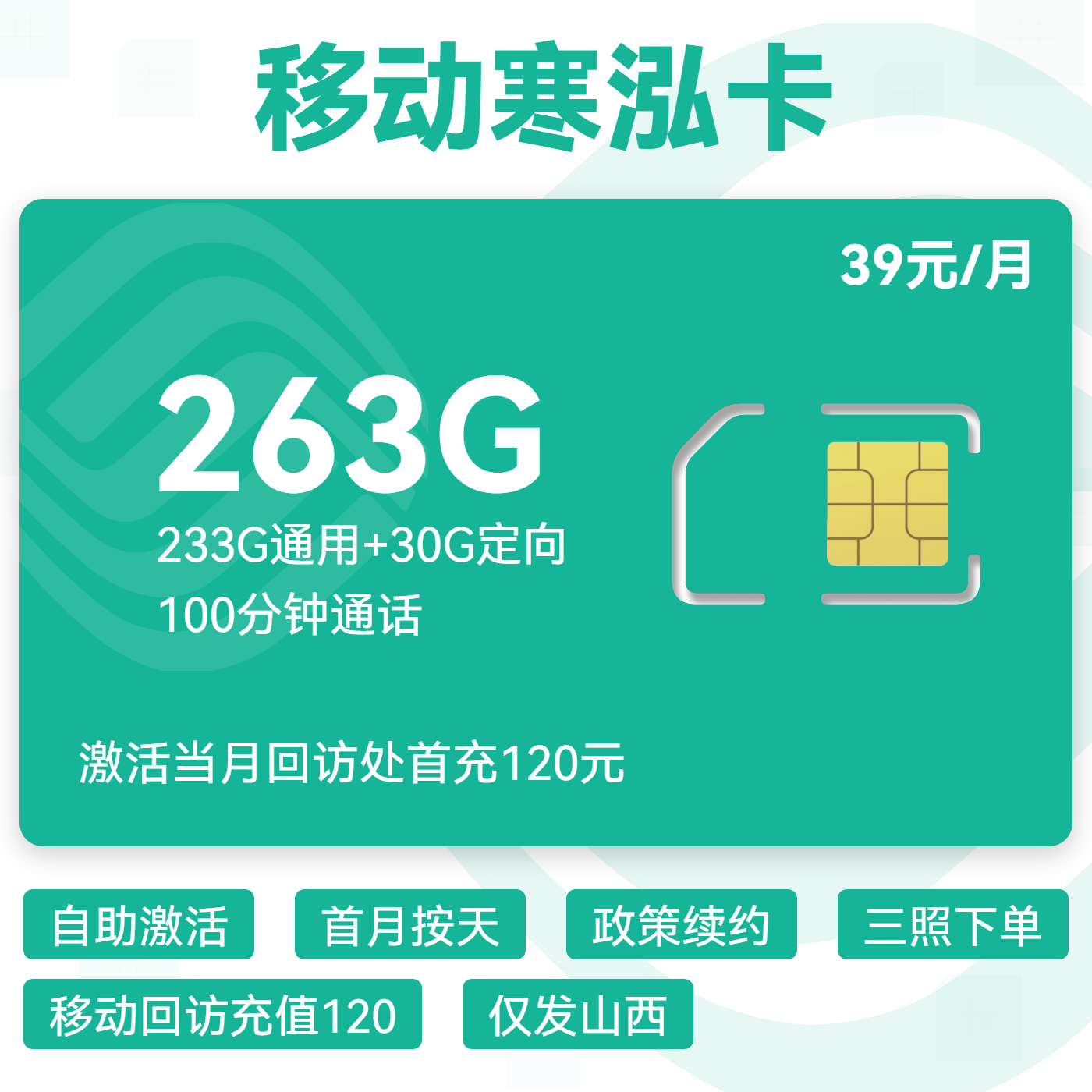 39元155G全国通用流量+100分钟通话(可选靓号)