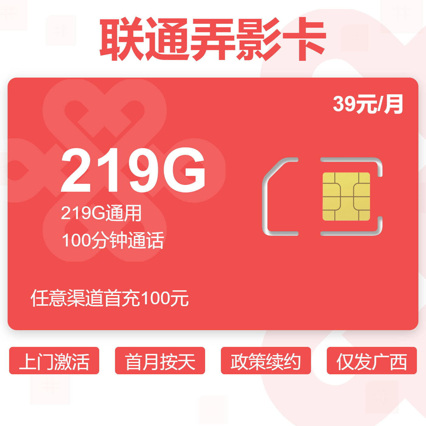 中国联通金龙219G卡(广西区内先抢先得)