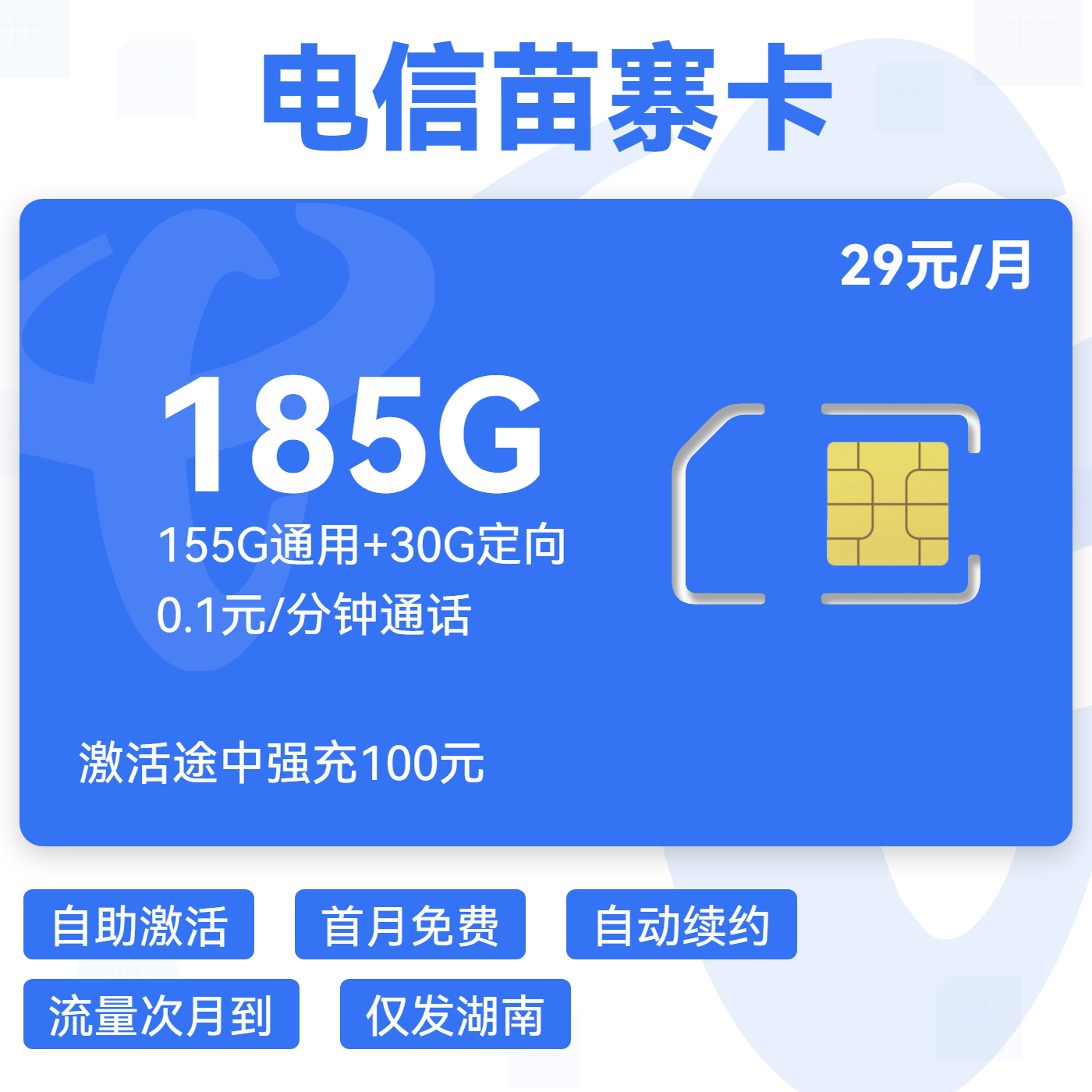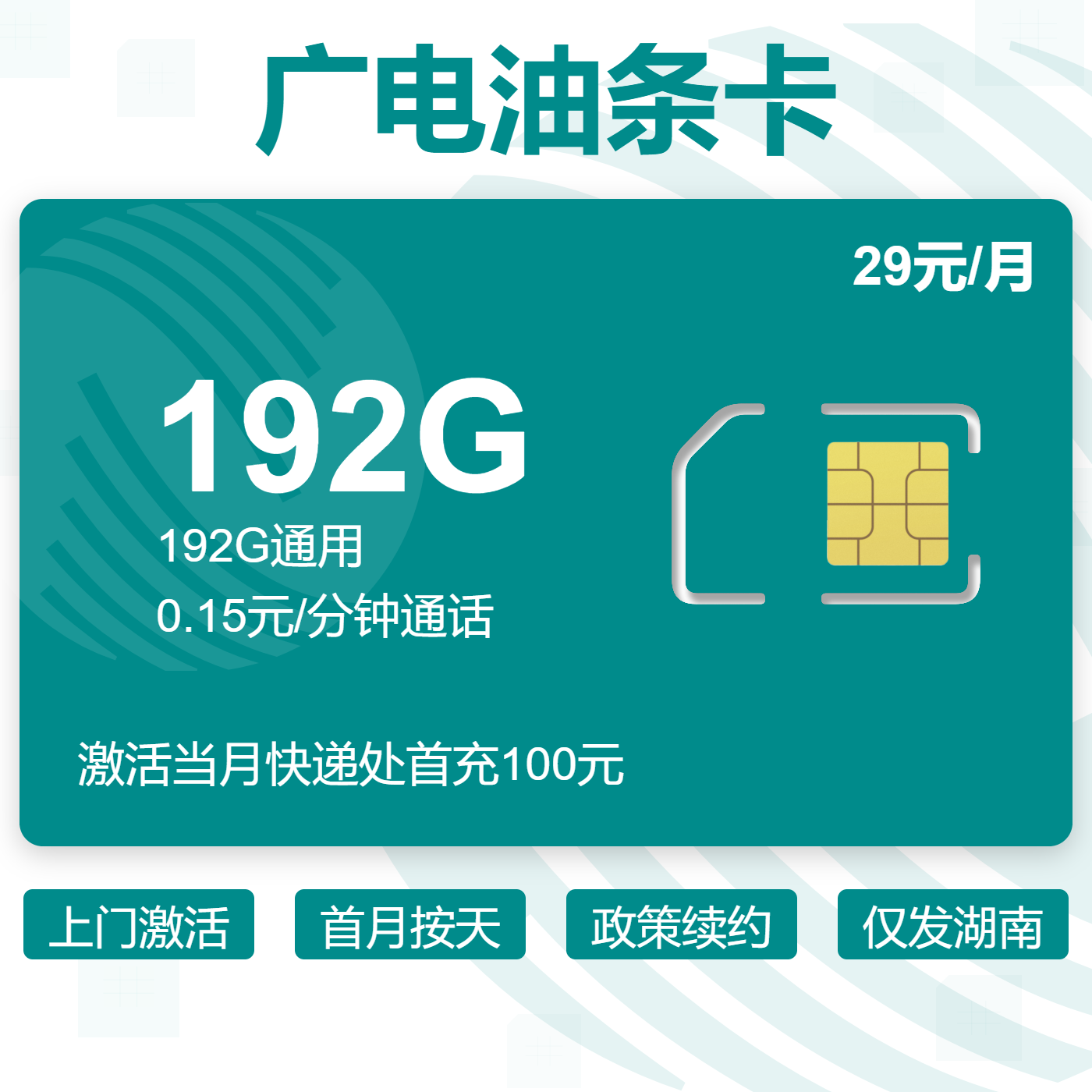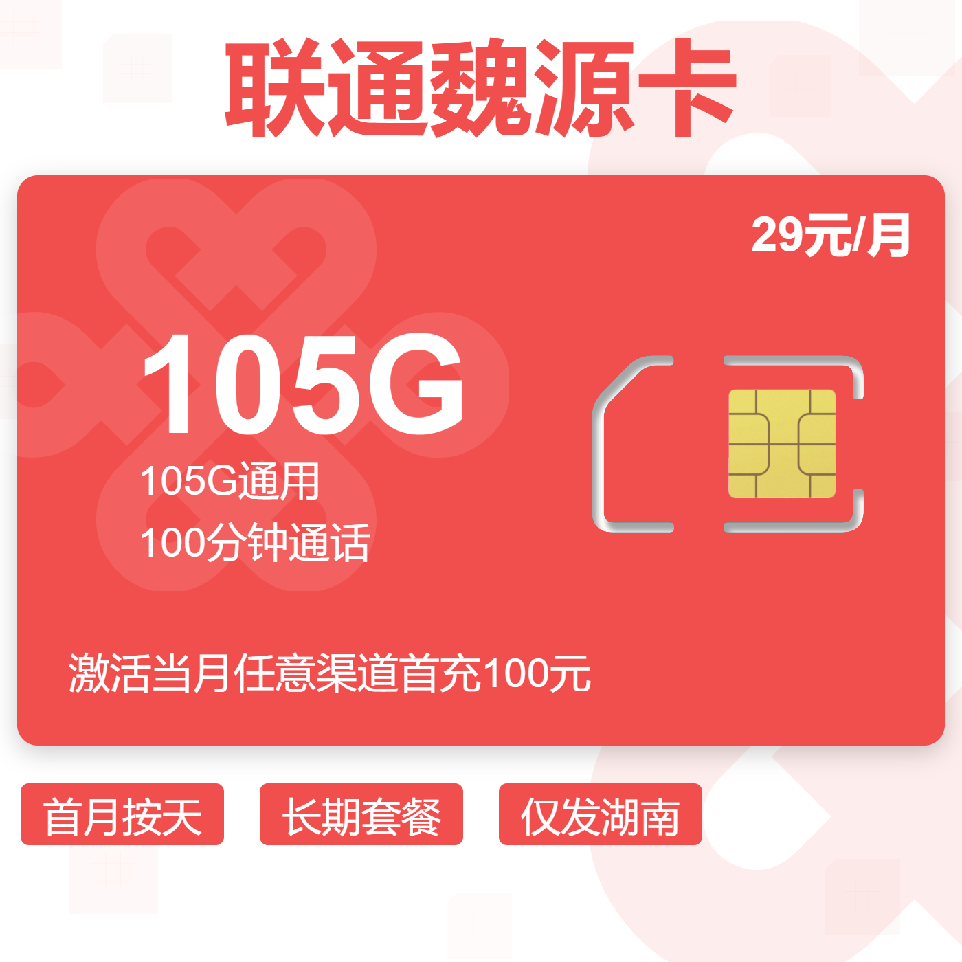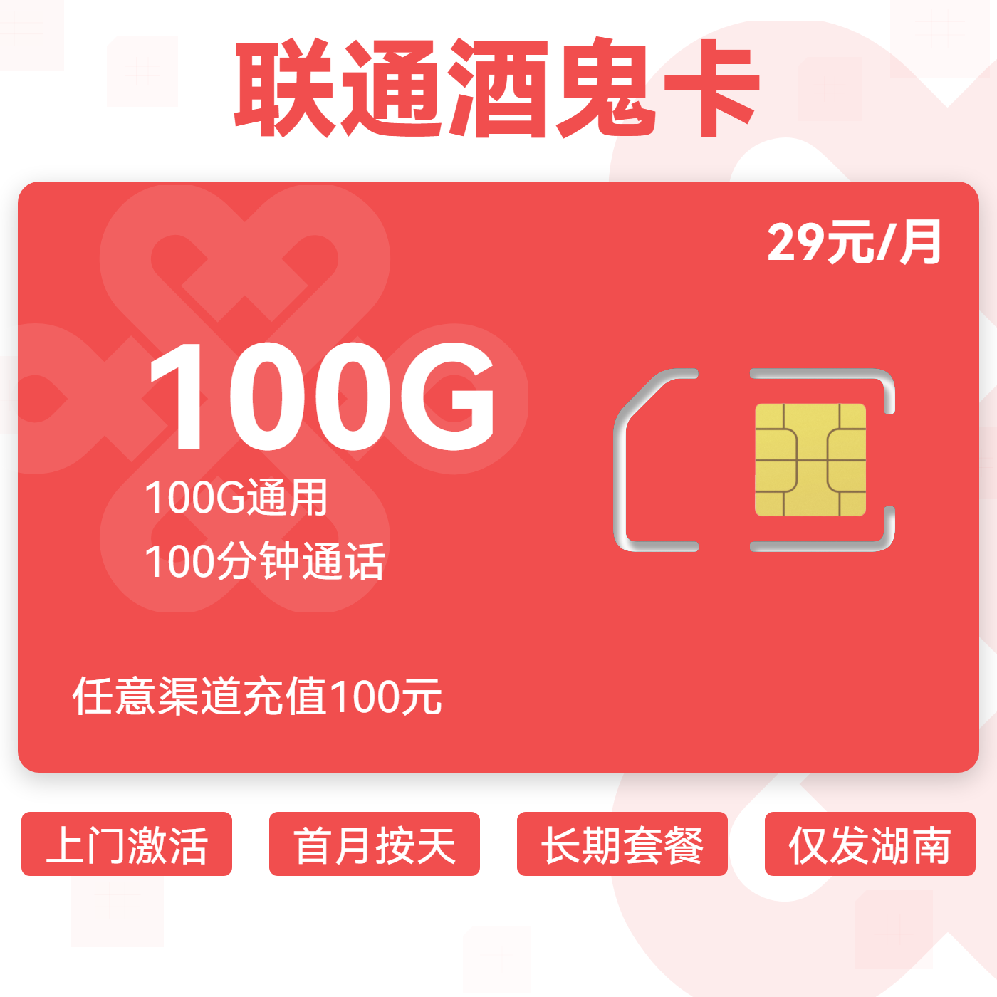 29元60GB全国通用流量+20G湖南通用流量+100分钟免费通话