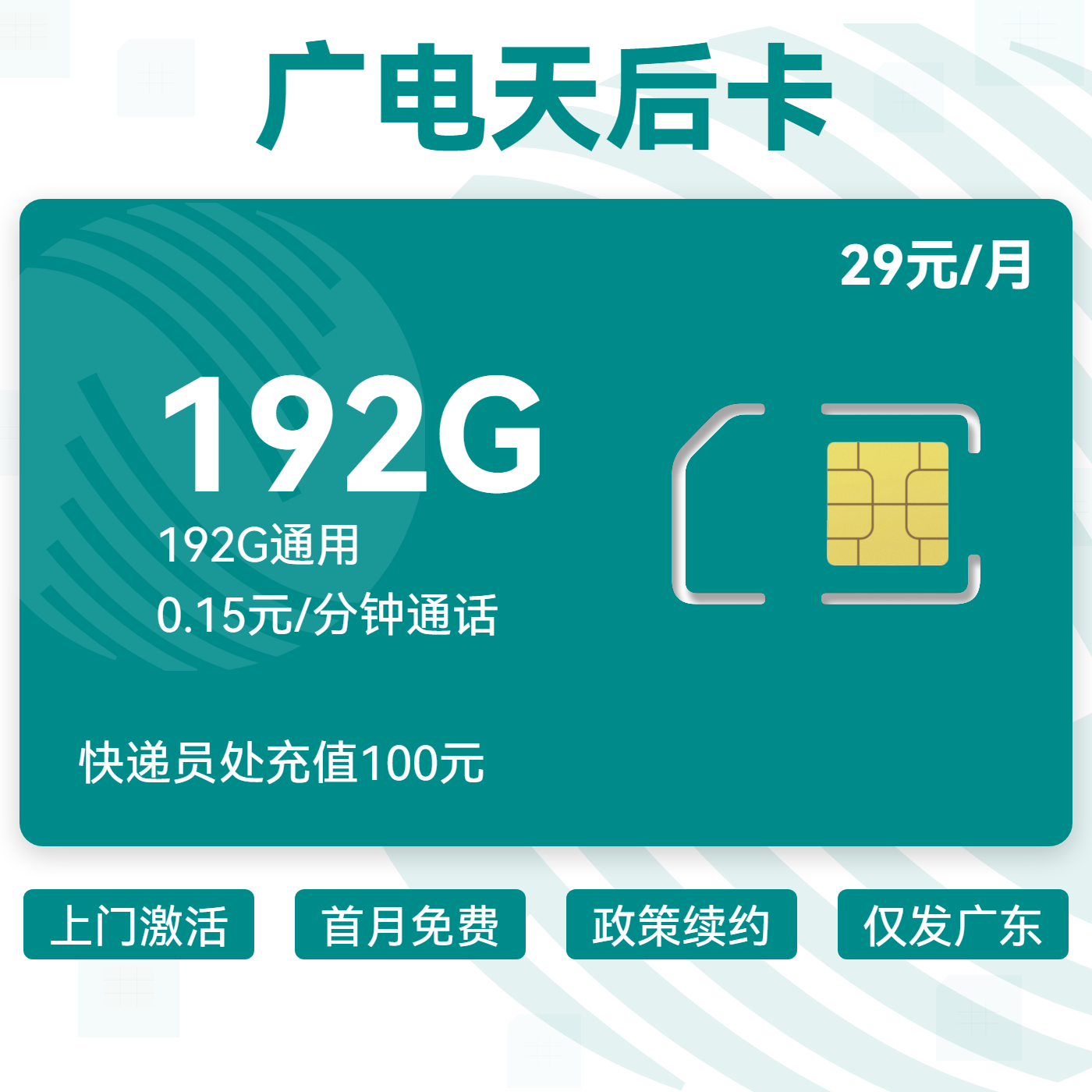 29元包192G通用+通话0.15元/分钟