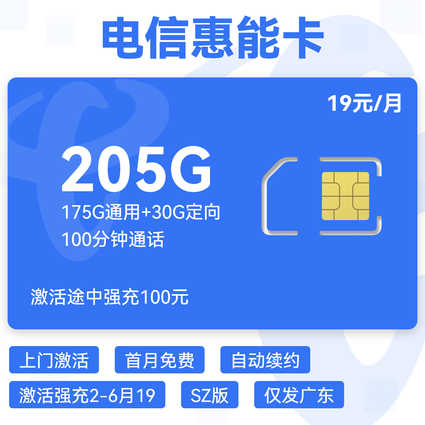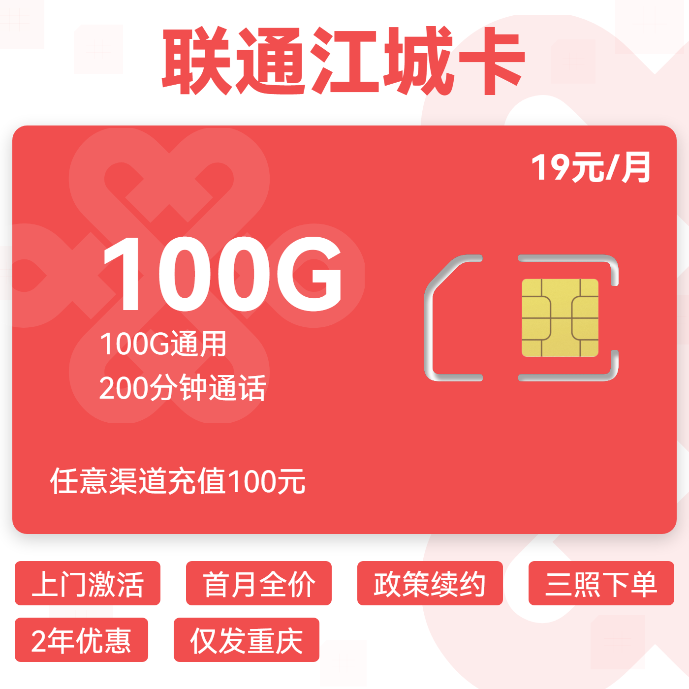 19元100G通用+100分钟