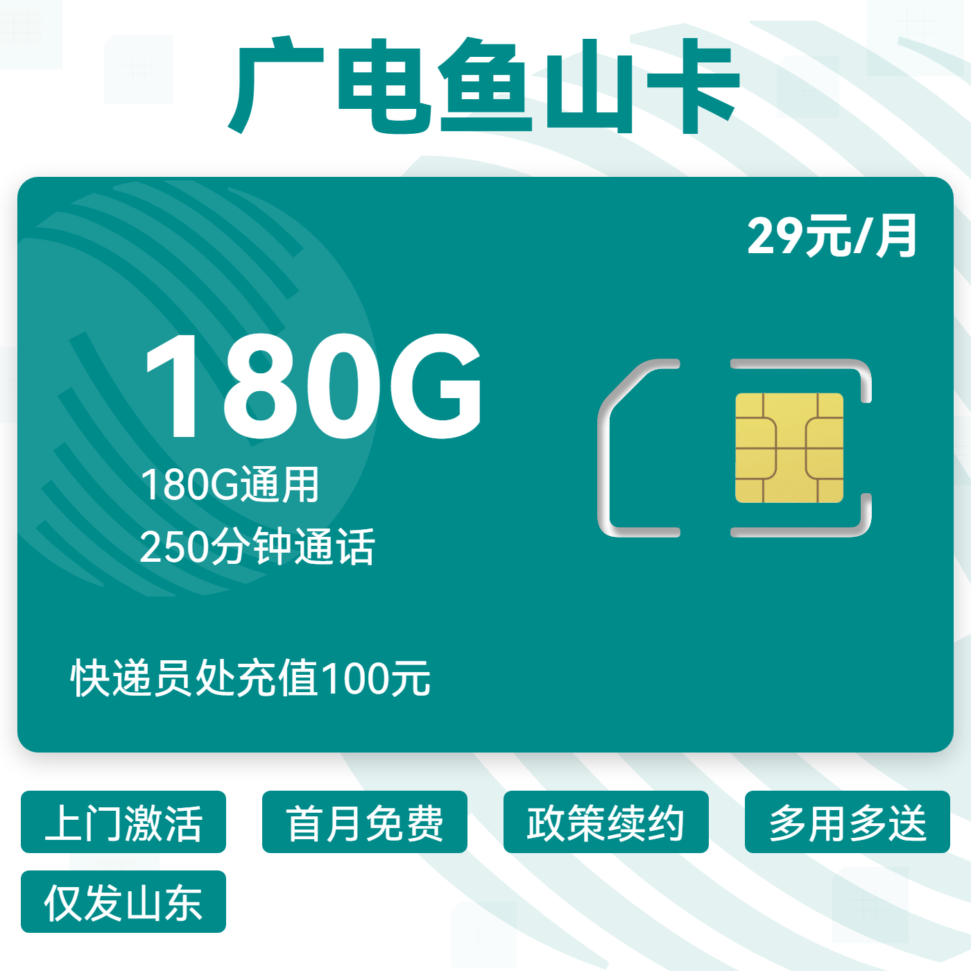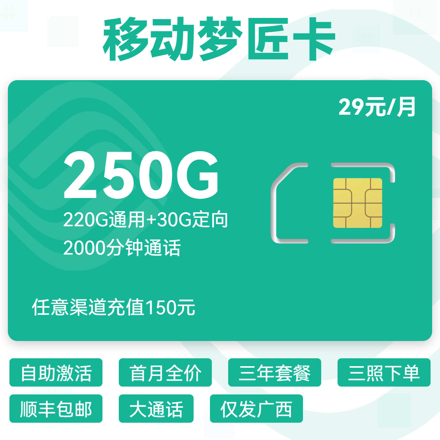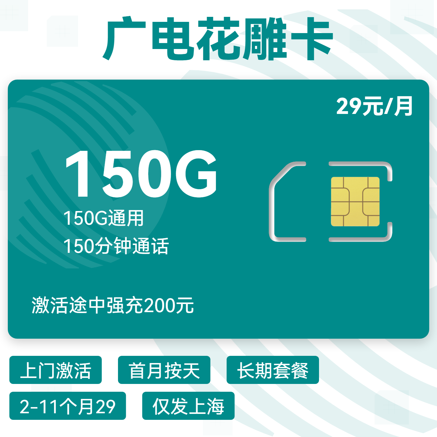 29元150G通用+30G多用多送通用+150分钟