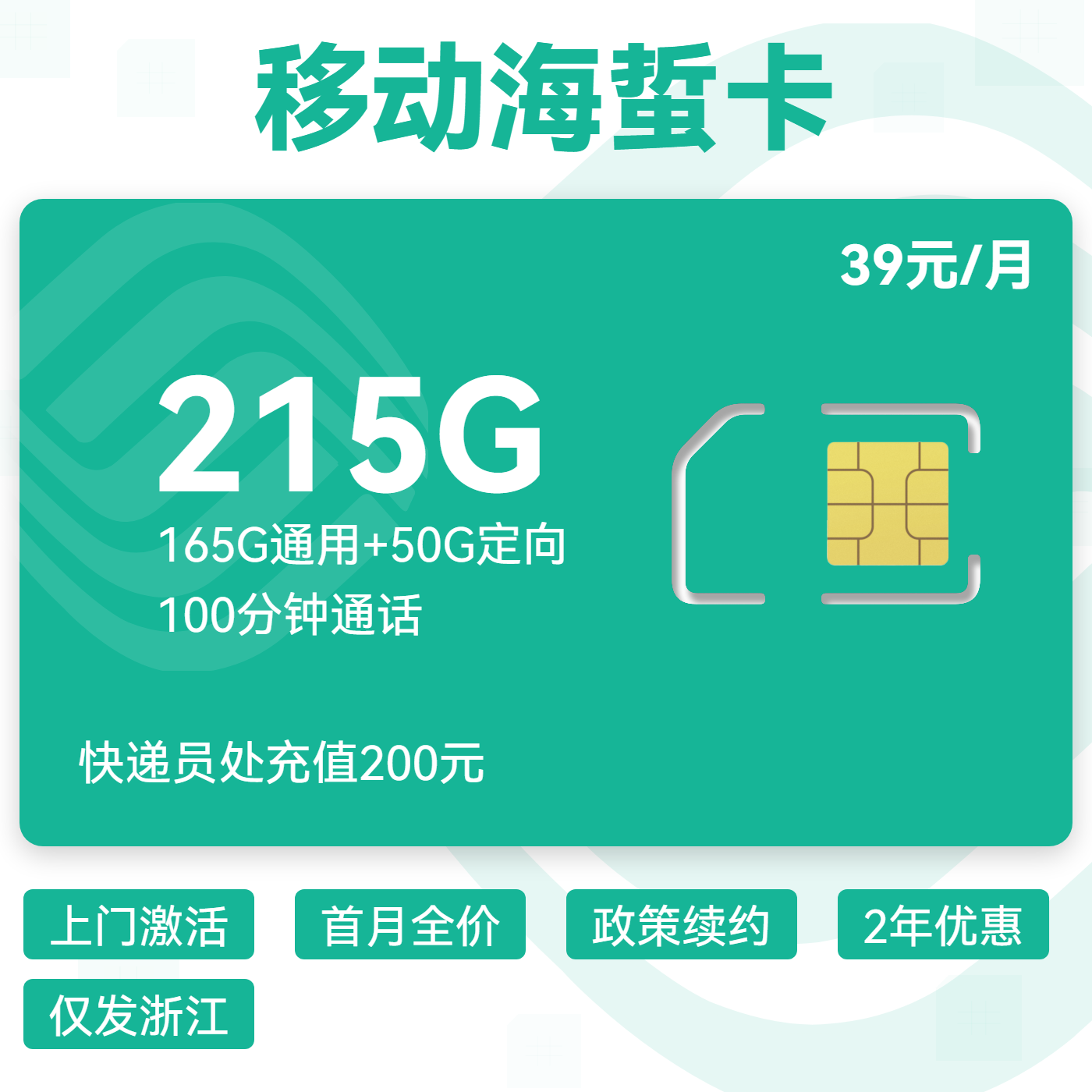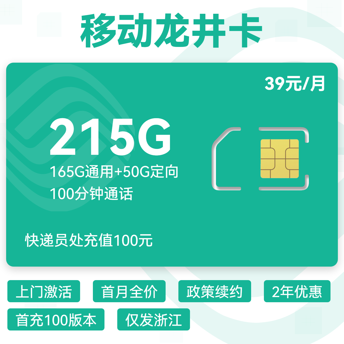 39元215G全国通用流量+100分钟国内通话
