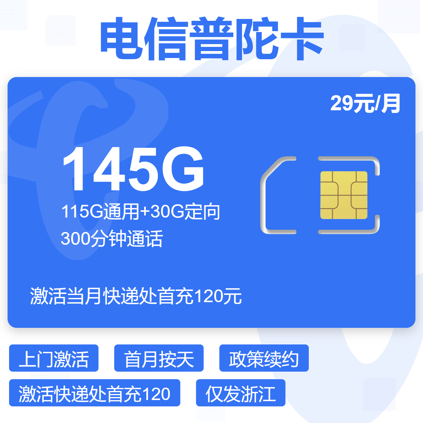 29元135G全国通用流量+100分钟(可选靓号,优惠可续)